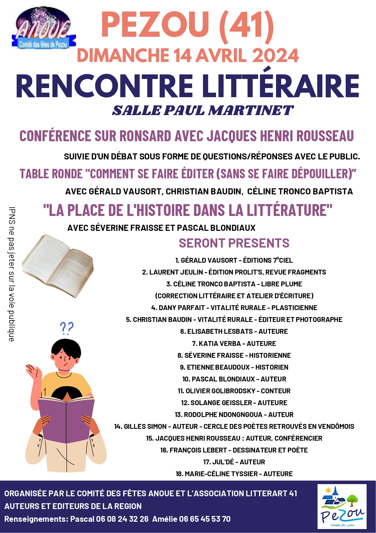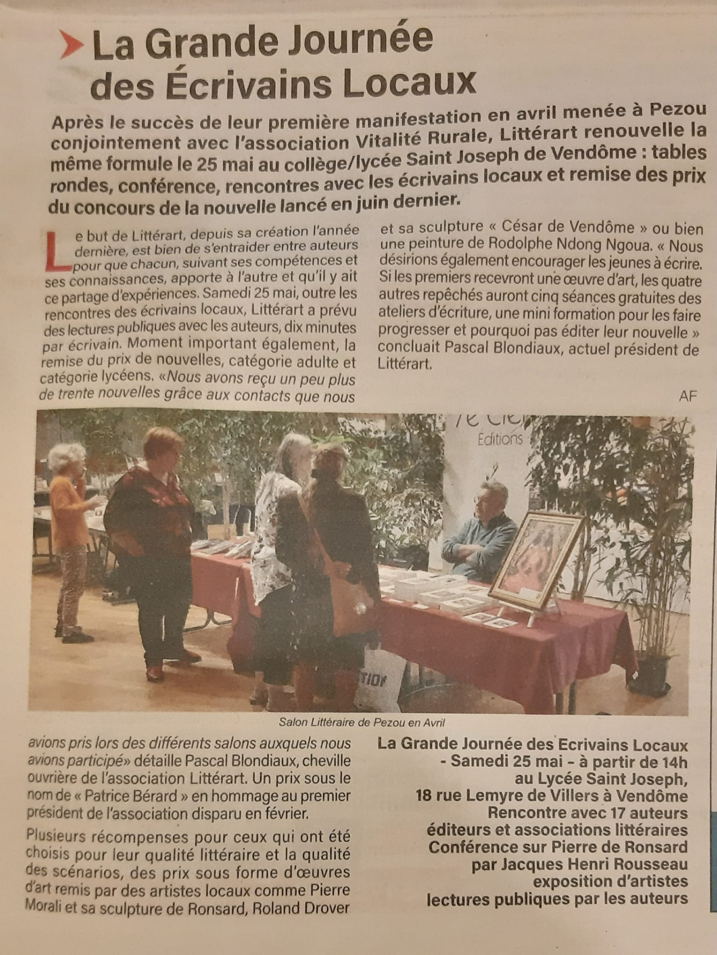 Le 29 novembre prochain, dans le cadre des animations du Téléthon, l'association Littérart41 organisera un atelier d'écriture autour de la poésie à 10h00, puis une lecture de l'Expiation, long poème de Victor Hugo, tiré de son livre "Les Chatiments"
